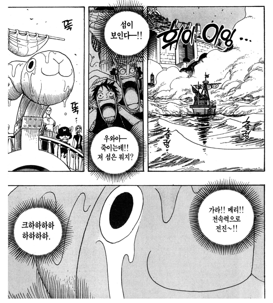 겟코 모리아는 칠무해치곤 좀… 허접한… 느낌이 잇어서(ㅈㅅ 근데 진짜로) 전체적으로 ~쉬어가는 편~ 이라는 느낌이 강한? 에피소드 같은데 ㅋㅋ;