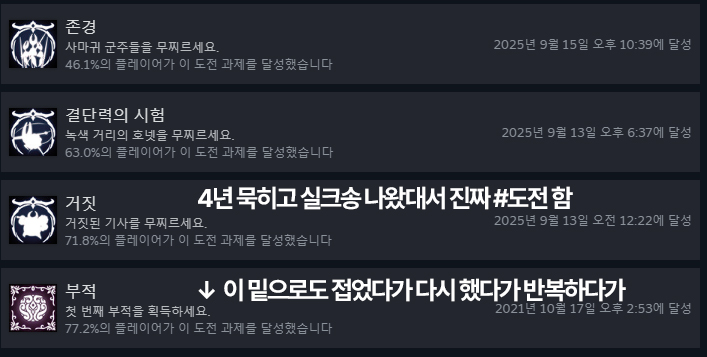 하여튼 간에 4년 묵힌 게임 치우니까 기분은 좋? 긴 함. 근데 아직도 묵힌 게임이 좐나 많음.