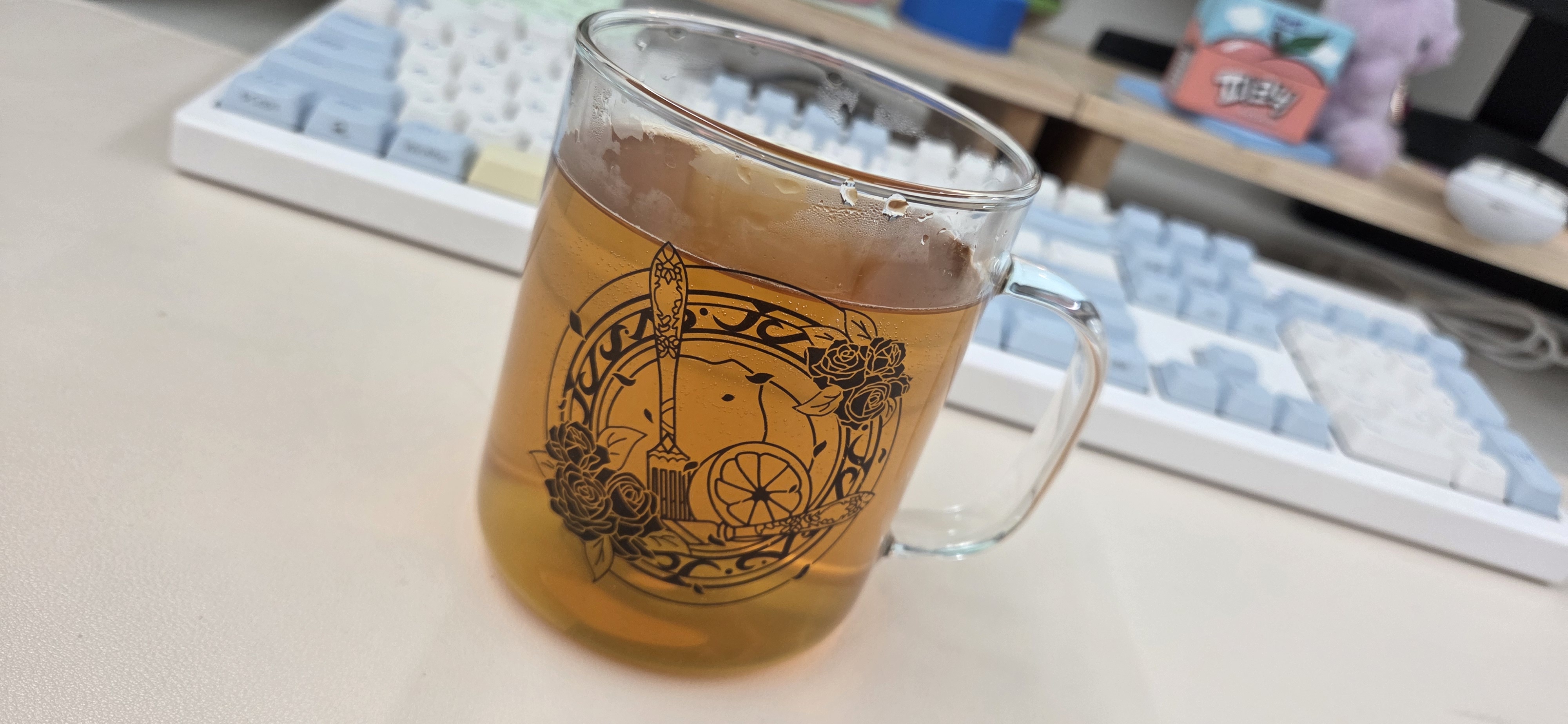 복숭아향이 캐모마일 향을 많이 가려줘서… 오오 이정도면 괜찮을지도? 됨 지금